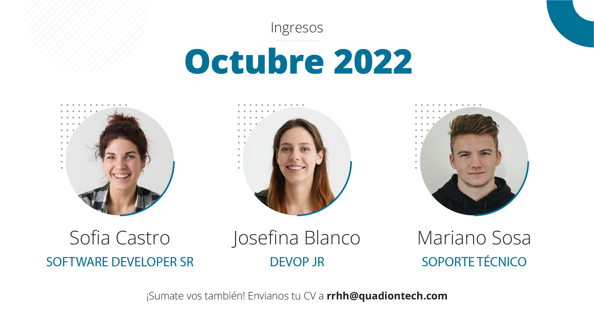Estas placas se difundirán en las redes oficiales de Quadion, en LinkedIn e Instagram, y serán acompañadas de texto que complete la información sobre la búsqueda.