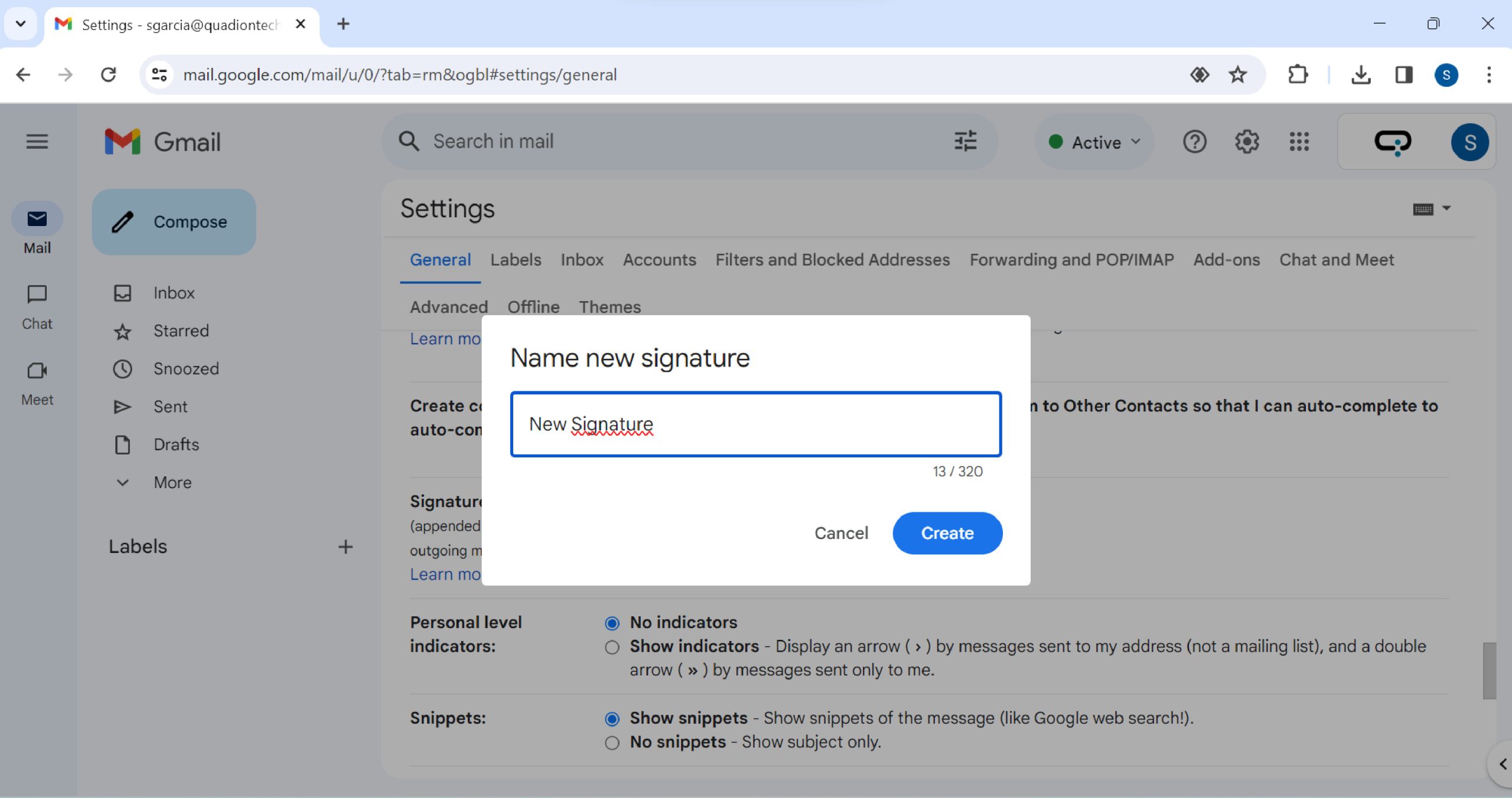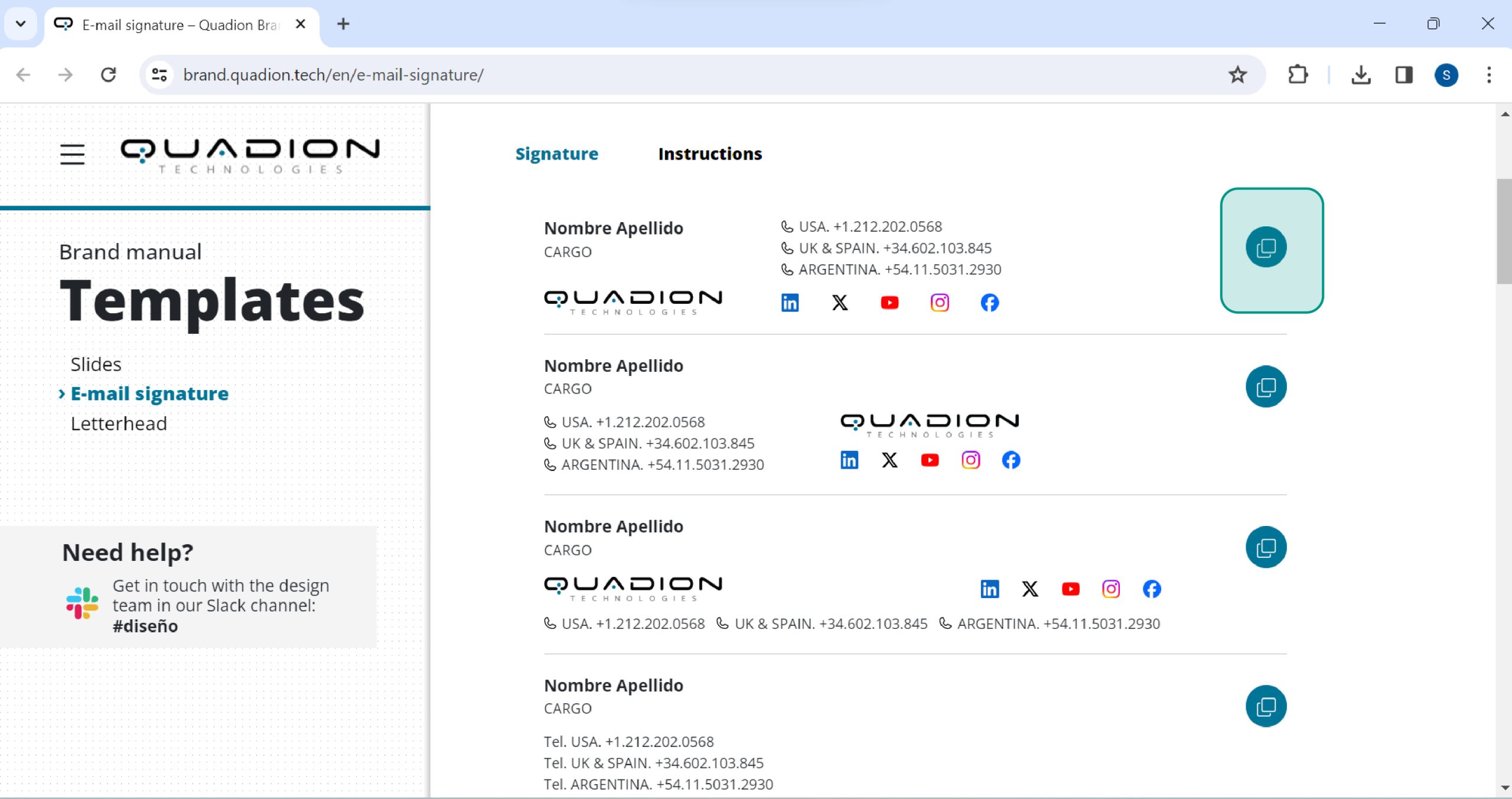Go to the text editor and paste the signature you copied from the Quadion Branding Manual.