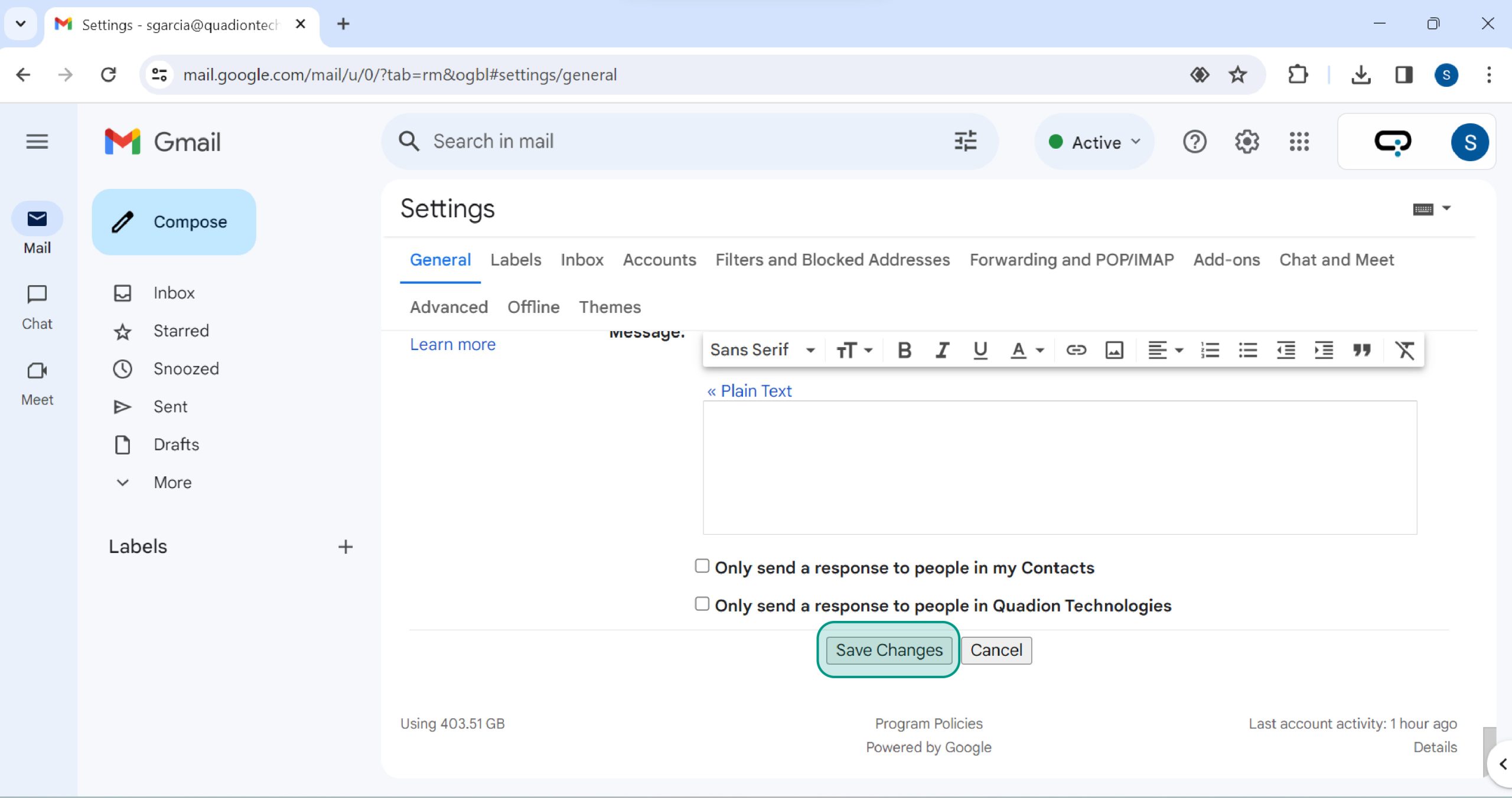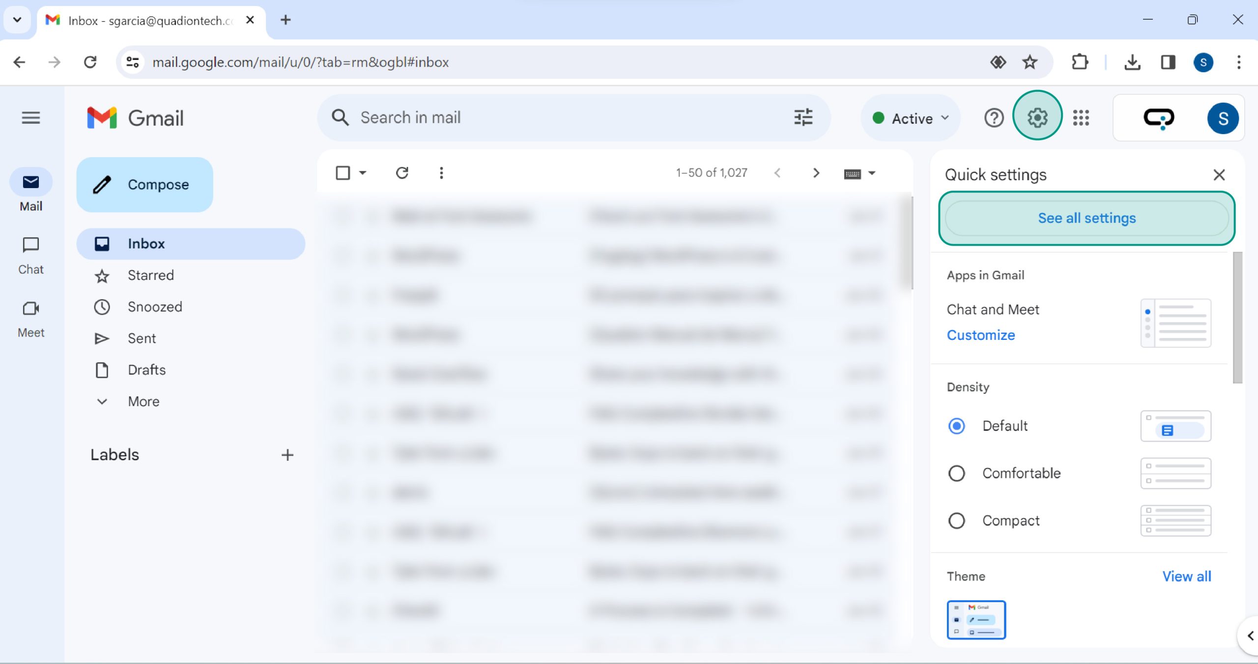 In your Quadion mailbox, click on the Settings section and then in the right pane click on See all settings.