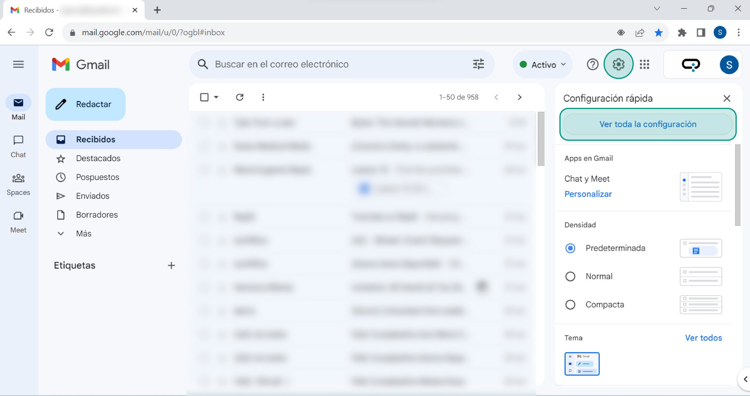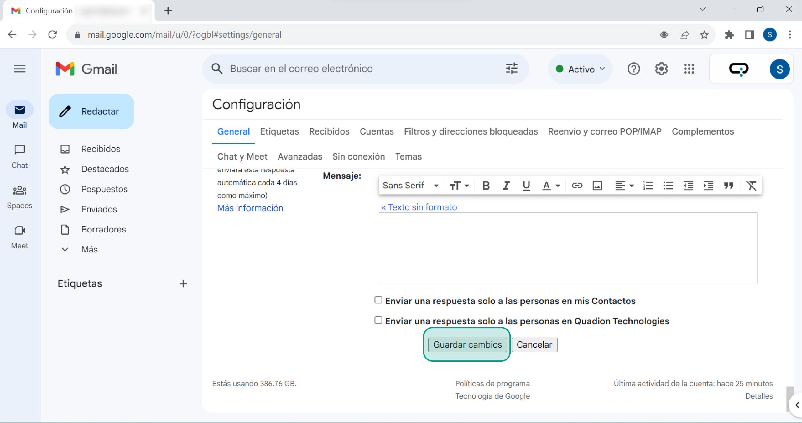 En tu casilla de correo de Quadion, dirigite a la sección de Configuración y luego en panel derecho hacé click en Ver toda la configuración.